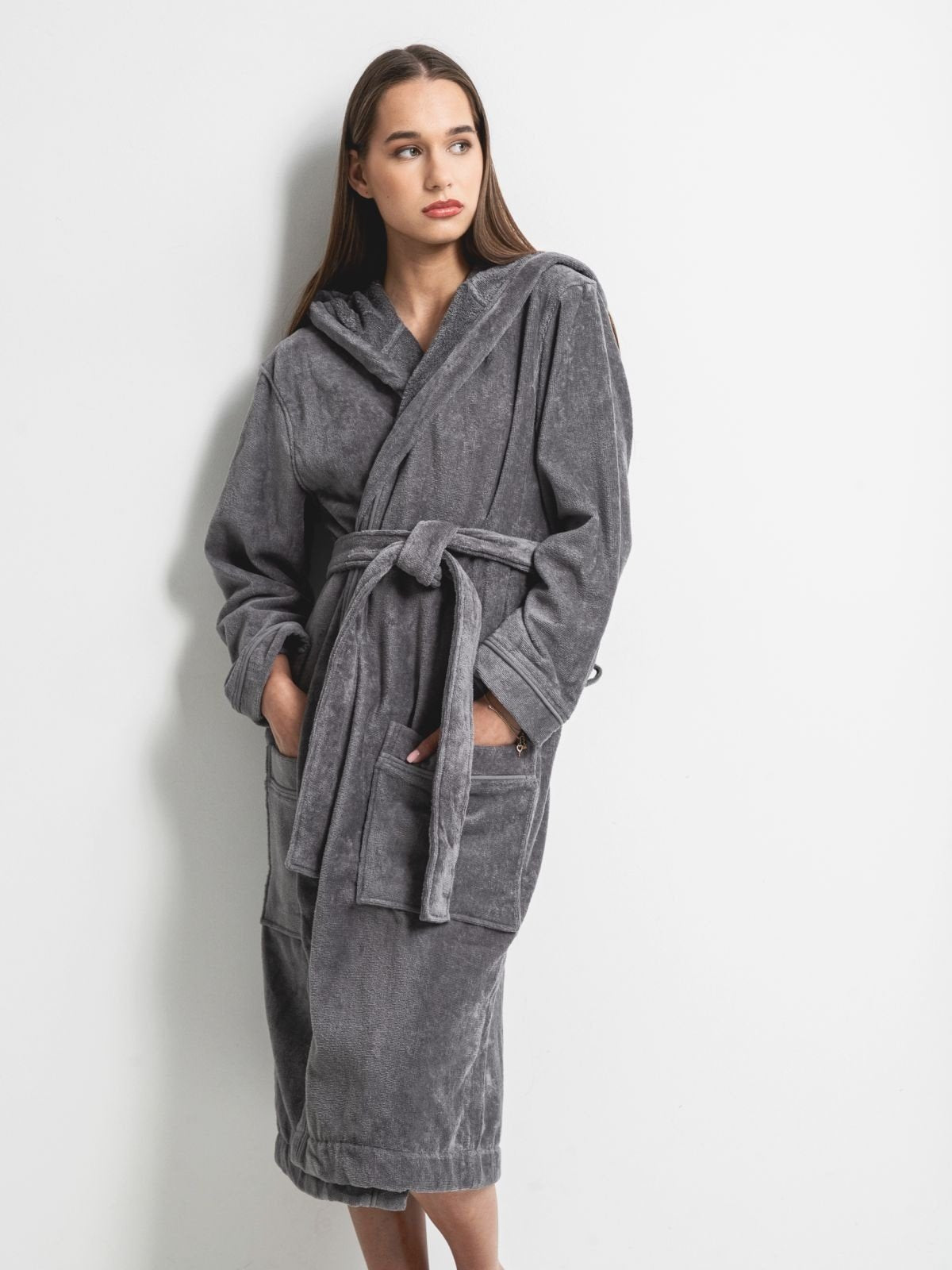 Set: velour hooded robe and large velour towel (90 x 170 cm)
