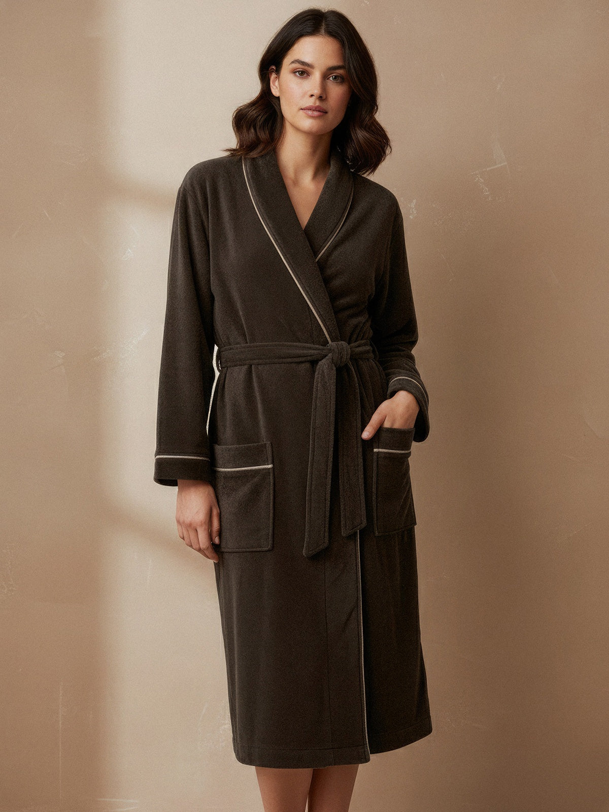 Velor dressing gown with side collar